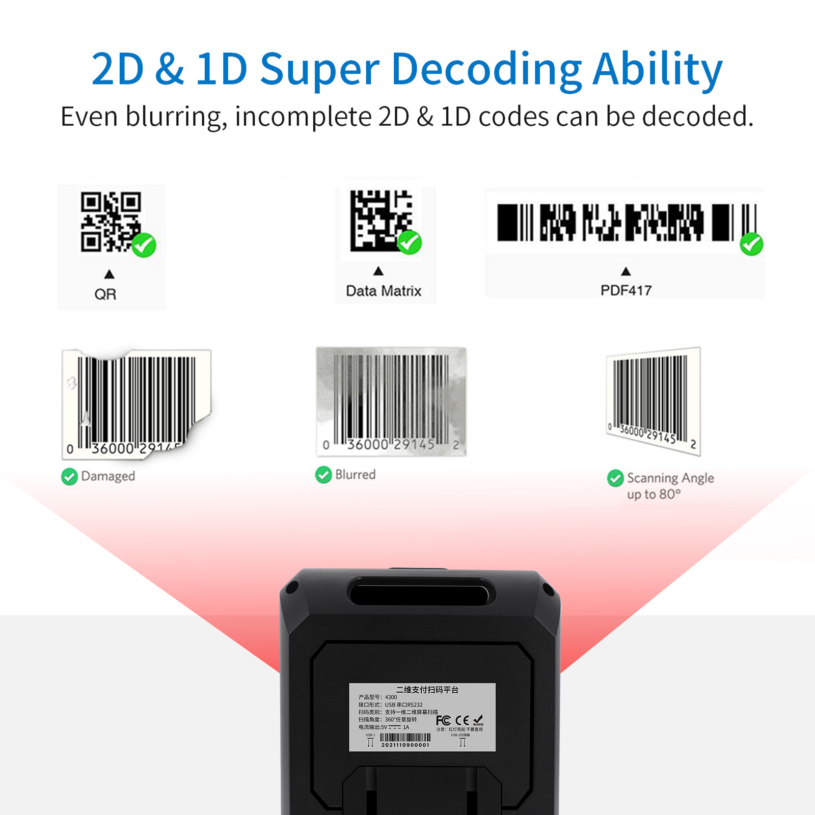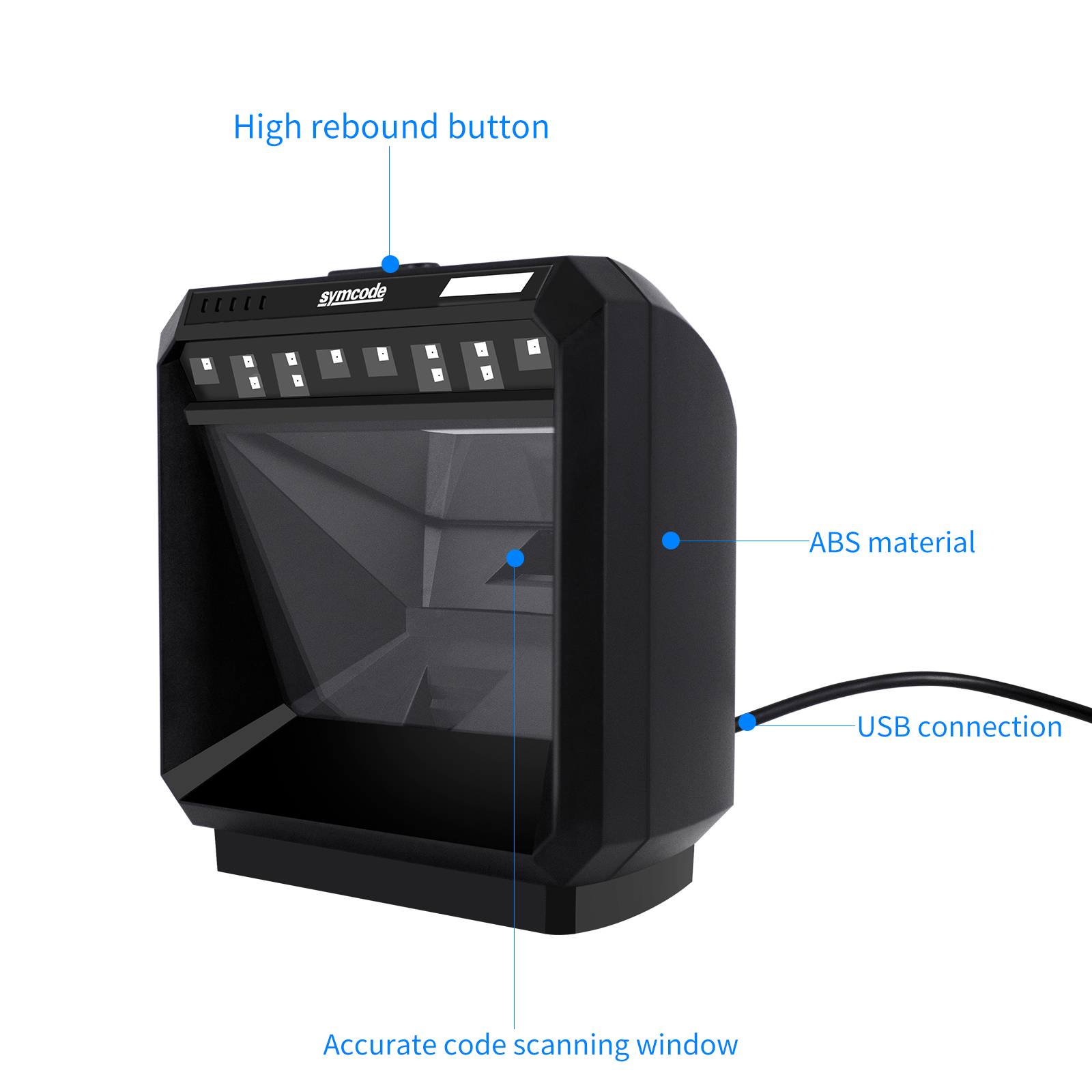 The Symcode MJ4300 desktop scanner is exceptionally user-friendly, requiring no software installation; it’s a simple plug-and-play device compatible with various operating systems. It boasts impressive decoding capabilities, effortlessly handling 1D and 2D barcodes, even damaged or incomplete ones, at high speeds. What sets it apart is its hands-free design, promoting efficiency and reducing strain, making it ideal for busy settings. Additionally, it features infrared auto-sensing technology for seamless scanning.
